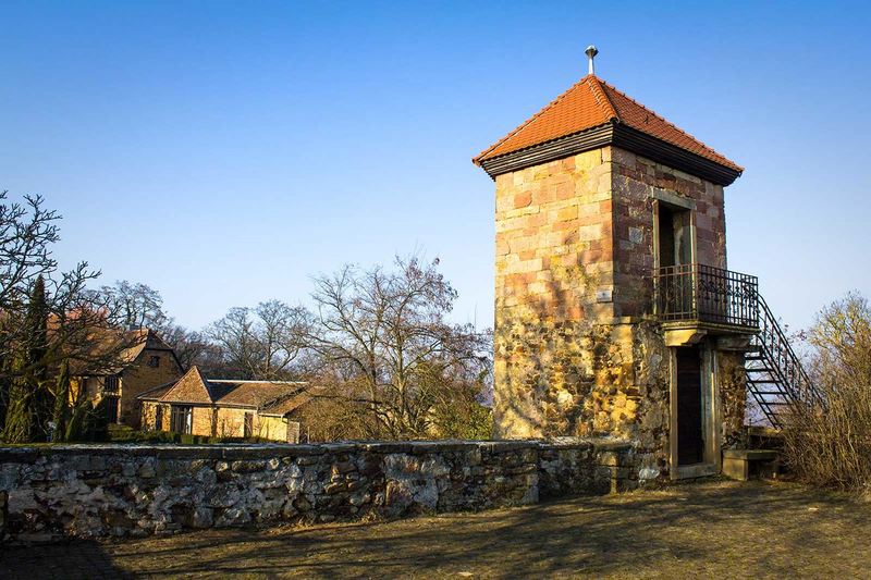 Bei dem Blick auf die wunderschöne Kulisse der Burg in der Pfalz, fühlt man sich an einen Urlaub in der Toskana erinnert. An weniger sonnigen Tagen lockt die urig anmutende Remise mit alten Steinmauern und gemütlichem Interieur.
