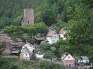 Die Reste der Burg Elmstein on der Pfalz werden von den Elmsteinern interessant in Szene gesetzt. Eine ansprechende Beleuchtung sorgt für die richtige Kulisse, die bei Touristen gerne als Fotomotiv genutzt wird. Wie unser Bild zeigt, ragt sie in der Perspektive nur knapp über die Dachfirsten der Gemeinde und bildet mit ihnen zusammen ein pittoreskes Ensemble.