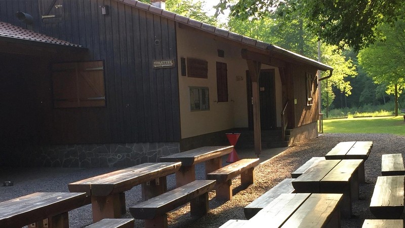 Die Drachenfelshütte bei Busenberg in der Pfalz ist da keine Ausnahme. Mit über 300 Sitzplätzen gehört sie zu den größeren und bekannteren Pfälzerwald Hütten.