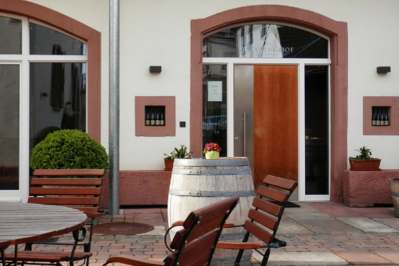 Der Eingang lässt schon vermuten, dass hier früher schon emsig gearbeitet wurde. Die Scheune und die ehemaligen Ställe, die in das Anwesen integriert worden sind, sind ein kleines architektonisches Meisterwerk. So wurde das heute noch erhaltene Kreuzgewölbe der Ställe von einem Kirchenbaumeister entworfen. Hier lässt es sich trefflich ausruhen, frühstücken oder speisen. Die Kelterhalle mit ihren Sandsteinsäulen macht ebenfalls Eindruck - es hat etwas Herrschaftliches, in diesem Räumen des Rieslinghof zu sitzen und das Leben, guten Wein und Pfälzer Gastlichkeit zu genießen.
