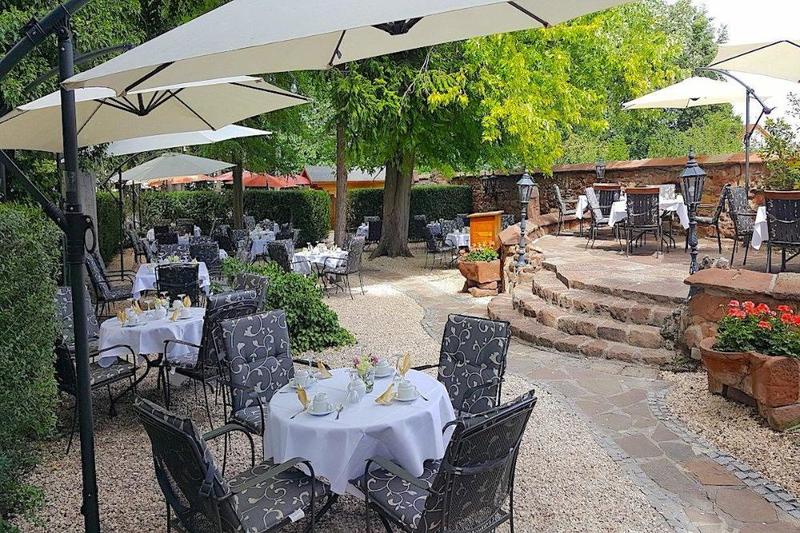 Bekannt ist der Goldener Engel in der Ortsmitte von Edesheim bei den Südpfälzern auch für seinen Wein- und Biergarten, in dem die Geselligkeit suchen kann oder auch eher zwischen den gepflegten Hecken für sich alleine bleiben. Im hinteren Bereich des Gartens gibt es einen großen Spielplatz, auf dem man seine Kleinen prima im Blick hat. Manch einer bleibt aber auch schon im idyllischen Hofgarten hängen, durch den der Weg in den Wein- und Biergarten führt.