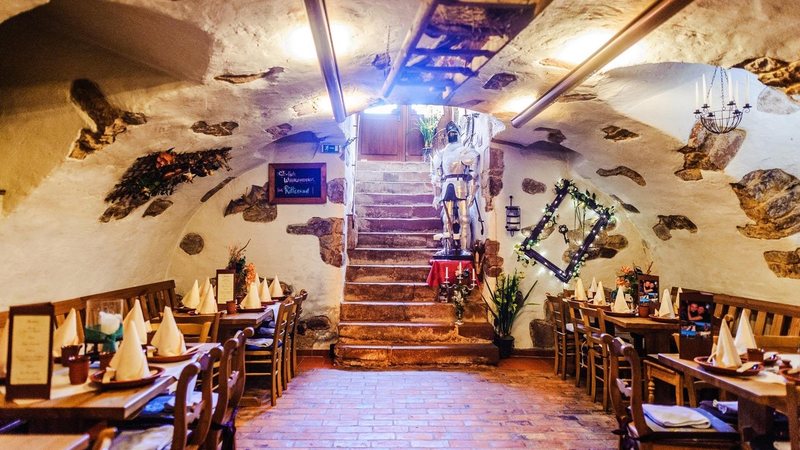 Der Gewölbekeller ist das Herzstück des Hauses. Hier können geschlossene Gesellschaften mit bis zu 50 Personen mittelalterliche Hochzeiten oder ausgelassene Betriebs- und Familienfeiern veranstalten. Oder aber, man nimmt an den besonderen Veranstaltungen, wie dem Mittelaltermahl oder dem Orientbankett, teil. Zur Weihnachtszeit ist der Gewölbekeller auch für die Restaurantgäste geöffnet.