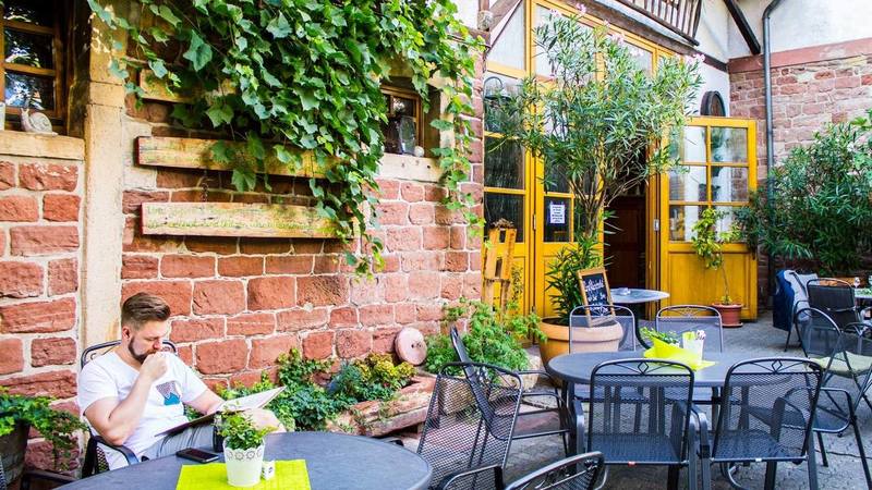 In Dyck´s Weinstube in Billigheim-Ingenheim wird typische Pfälzer Küche konsequent hausgemacht. Auf der stetig wechselnden Monatskarte finden sich saisonale Gerichte, die mit frischen Zutaten aus der Pfalz zubereitet werden. Im Sommer lassen sich diese trefflich in dem atmosphärischen Innenhof, zusammen mit einem leckeren Glas Bio-Wein aus dem Weingut, genießen.