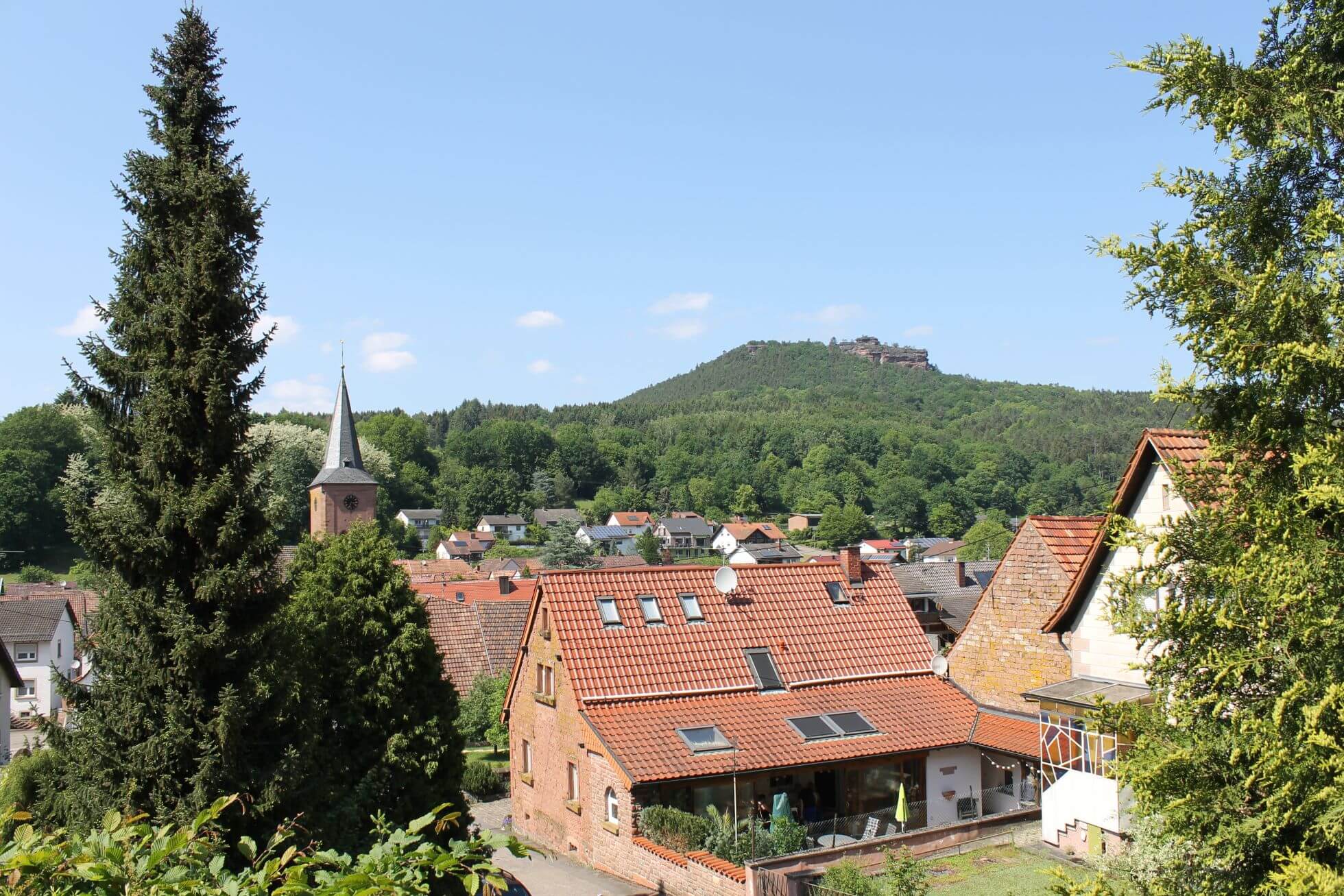 Oder...genauer beschrieben: Vom ersten grenzüberschreitenden Biosphärenreservat der UNESCO in Europa: Das Dorf Vorderweidenthal mit seinen rund 600 Einwohnern liegt im Herzen des deutsch-französischen Biosphärenreservats Pfälzerwald-Vosges du Nord und fand 1313 erstmals urkundliche Erwähnung. Über dem Ort thront die Burgruine Lindelbrunn - überhaupt erreicht man von Vorderweidenthal aus mehrere Burgen zeitnah zu Fuß oder mit dem Fahrrad, so zum Beispiel Burg Berwartstein oder die Burg Drachenfels.